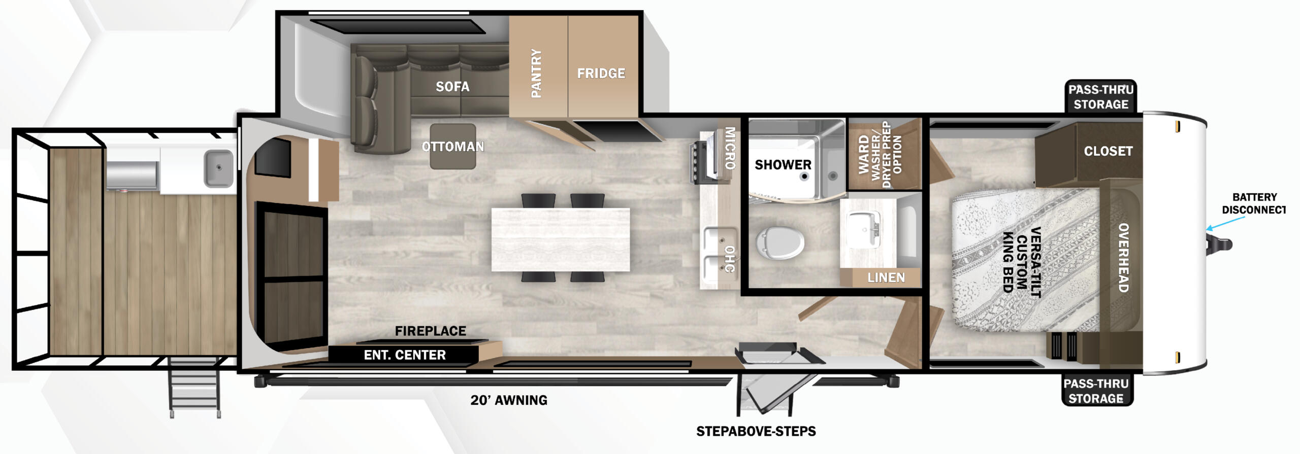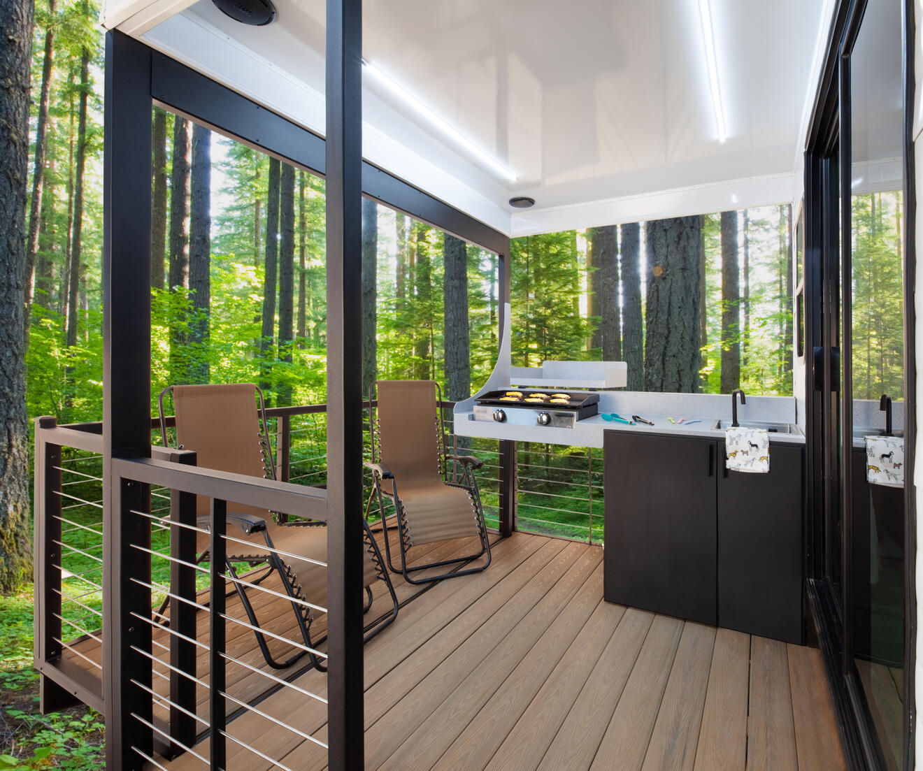 Meet the VERSA-GLIDE deck system, the industry’s first electronically extendable deck. With just a touch, seamlessly expand your outdoor space, creating the perfect setting for any occasion. Whether you’re enjoying a peaceful night under the stars or hosting a lively gathering, VERSA-GLIDE elevates every outdoor experience. Available exclusively on Salem Veranda travel trailer models.